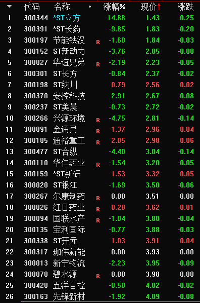 “验证了‘该涨不涨,必有暴跌’的股谚。”华龙证券人民大道总经理牛阳表示,这一年多大多数主板低价股特别是主板ST股在高质量并购重组的推动下,有些公司基本面有了实质性改善,有些公司即使基本面没有改观但至少拿出了改善基本面的态度——这些都成为相关上市公司个股股价连续涨停牛气冲天的重要因素。反观创业板低价股群体,这一年多几乎没有多少拿出改善基本面态度的上市公司,徘徊于退市边缘的绩差问题股反倒是越来越多,它们的股价也就很难像主板低价股那样“雄起”了。而长期股价无法补涨的后果,自然是“该涨不涨,必有暴跌”的股谚再被应验了,领跌大市且刷新阶段性低价下限理所应当。